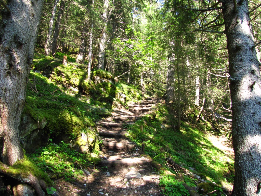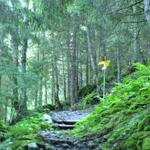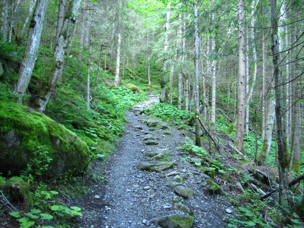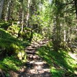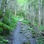 von der Gletscherschlucht führt der Weg nun direkt in den Wald am Fusse des Hörnli