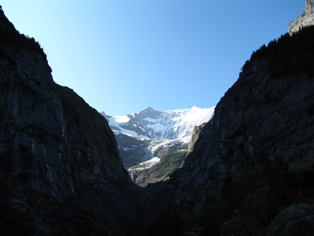 hier gut ersichtlich das tief eingeschnittene Tal das durch den Gletscher geformt wurde