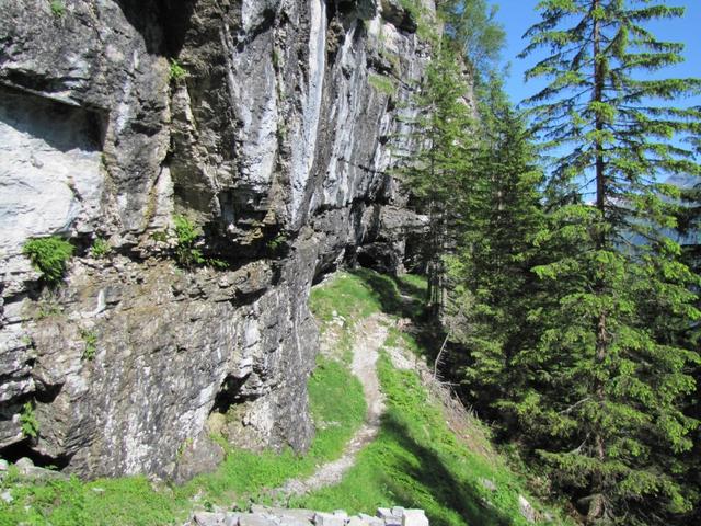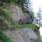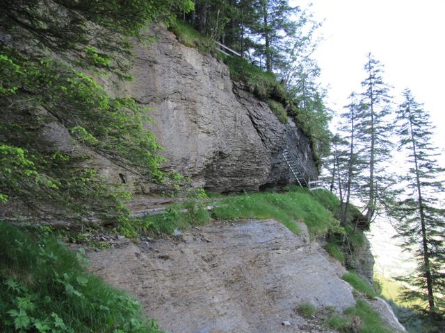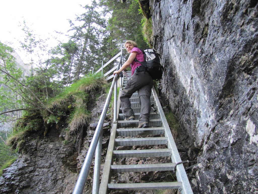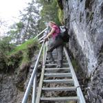 sieht schlimmer aus als es ist. Über Leitern führt der Weg nach oben Richtung Lägerli 1508 m.ü.M.
