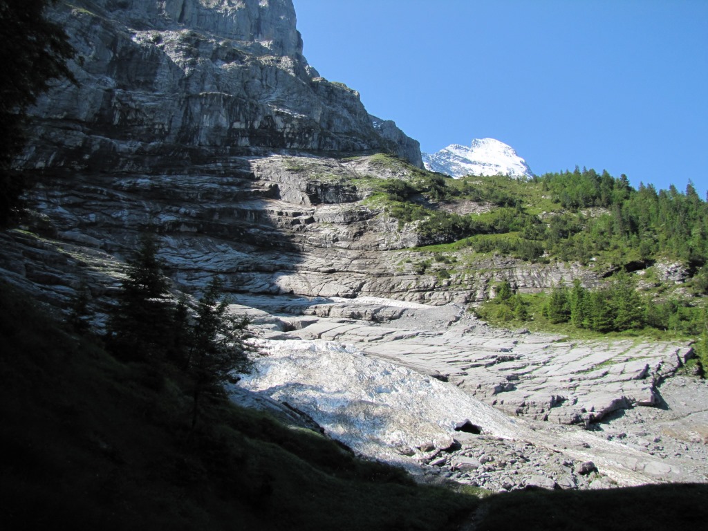 wir haben den Schüssellouwinegraben erreicht. Im Hintergrund der Eiger