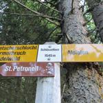 Wegweiser beim Schüssellouwinegraben 1545 m.ü.M.