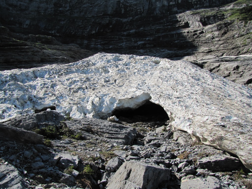 eisig kalte Luft strömt aus der Öffnung vom Altschneefeld