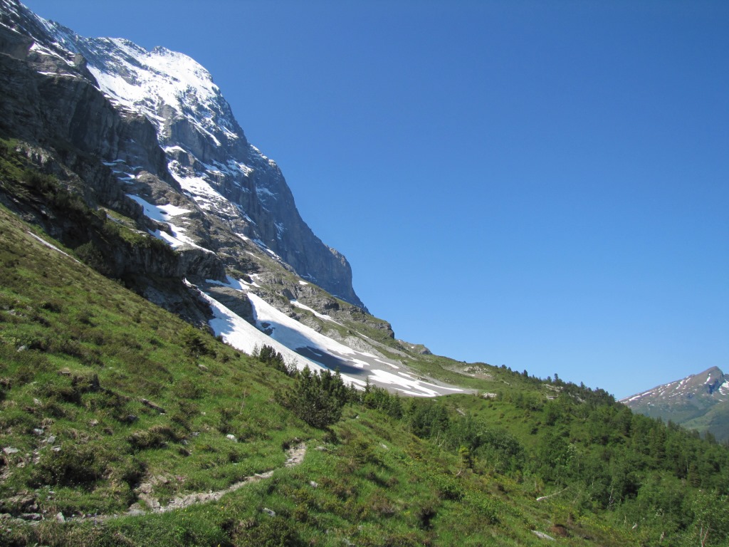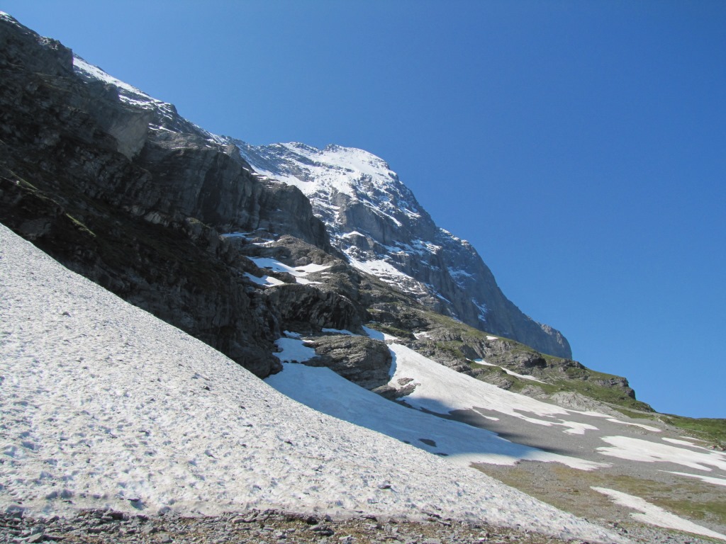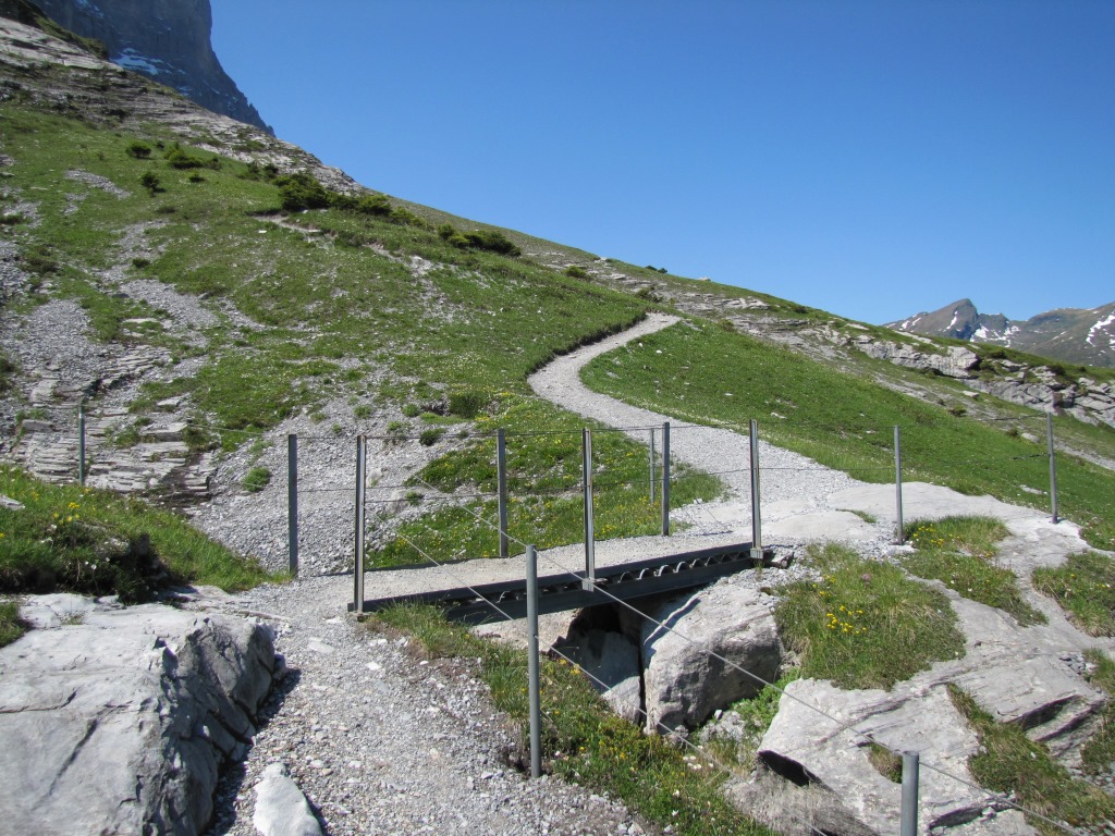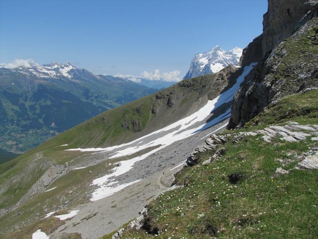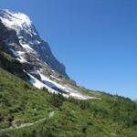 der gut markierte und ausgebaute nicht ausgesetzte Wanderweg, führt direkt neben der Eiger Nordwand