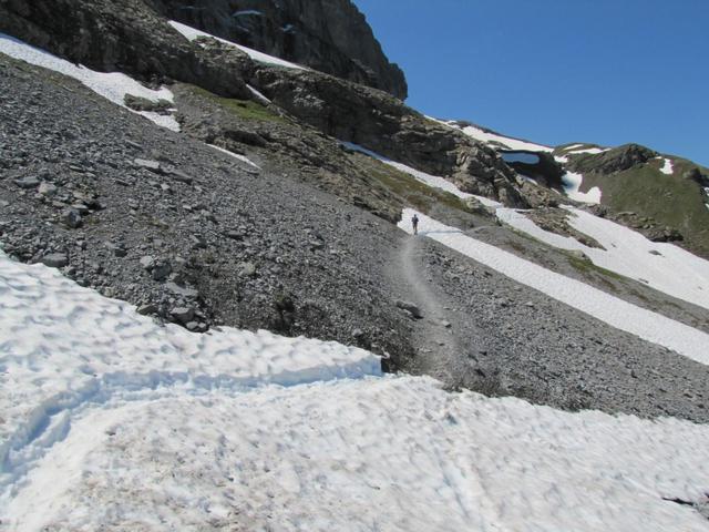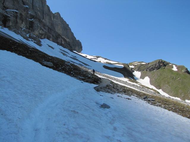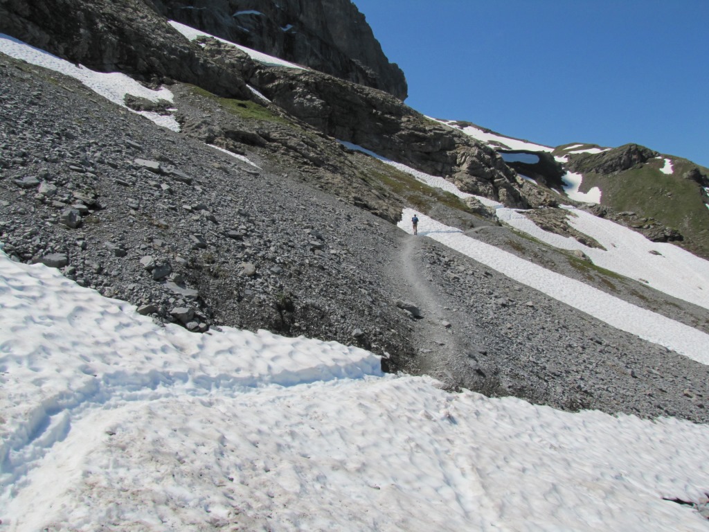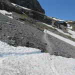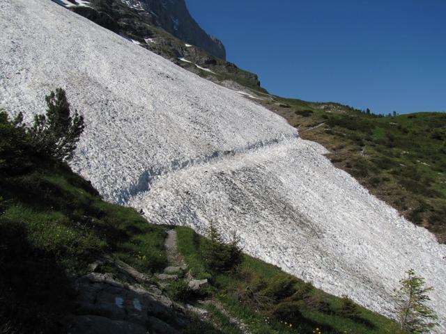 in diesem Graben liegen oft noch bis in den Sommer hinein, grosse Altschneefelder