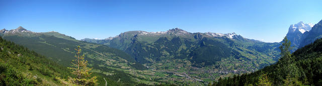 schönes Breitbildfoto. Links Männlichen, Grindelwald, Faulhorn, Schwarzhorn und Wetterhorn