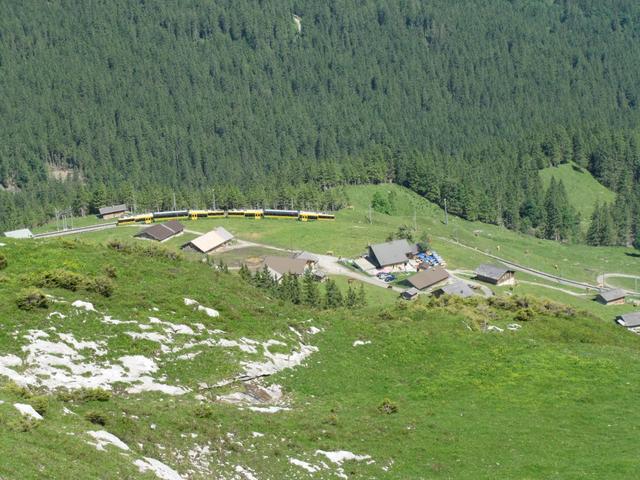 Blick hinunter zur Bahnstation Alpiglen der Wengernalp-Bahn
