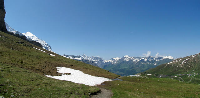 was für eine schöne Aussicht. Ganz links gut ersichtlich das strahlendweisse Silberhorn