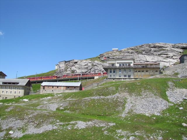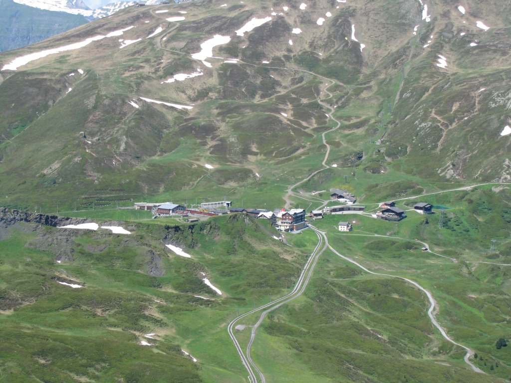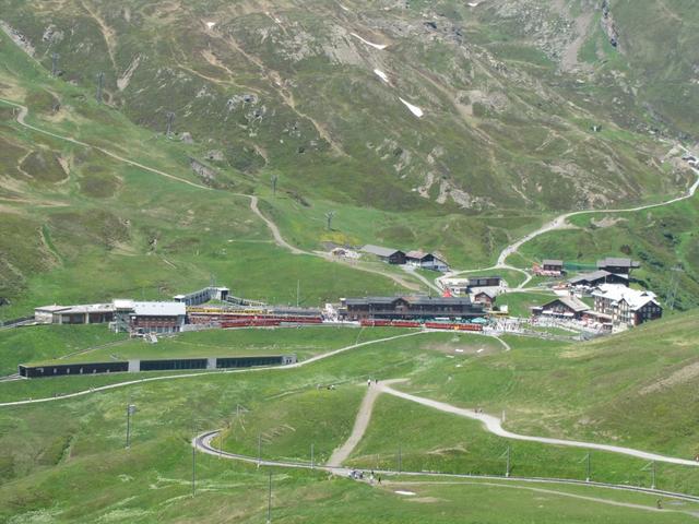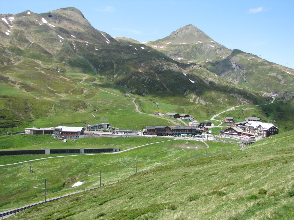 Blick hinauf zur Station Eigergletscher der Jungfraubahn