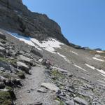 auf einer alten Moräne geht es nun abwärts. Hier war früher noch ein Gletscher