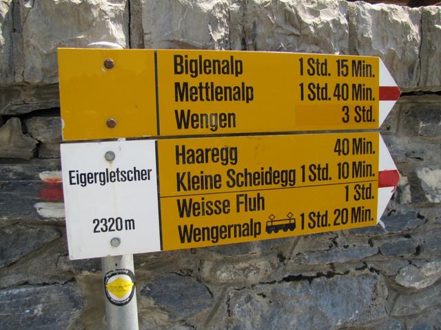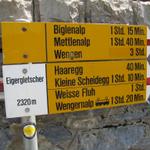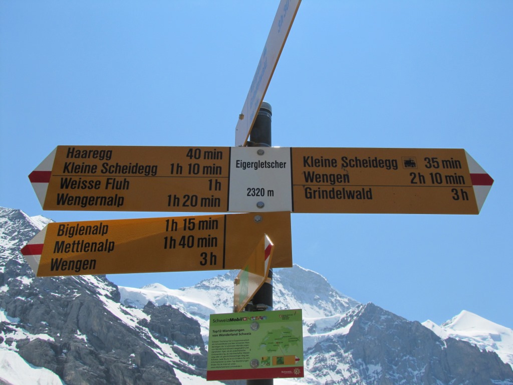 Wegweiser bei der Station Eigergletscher 2320 m.ü.M.