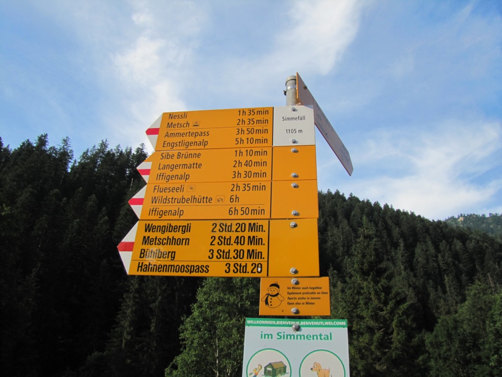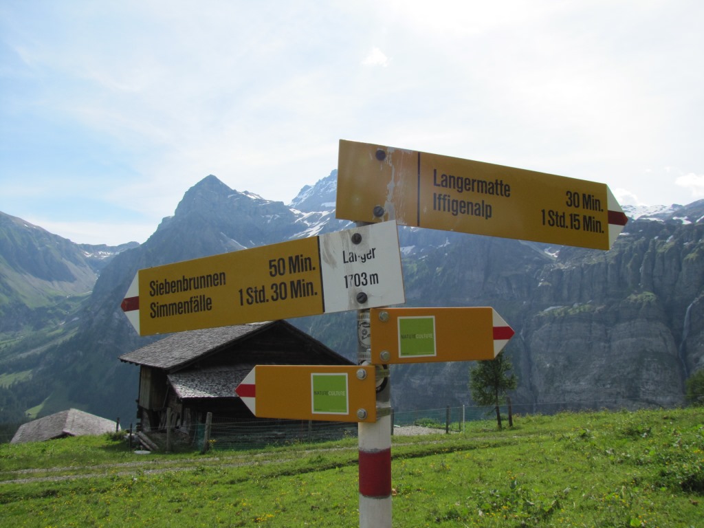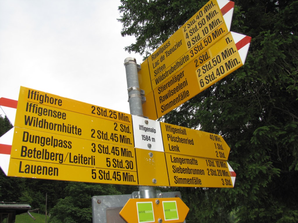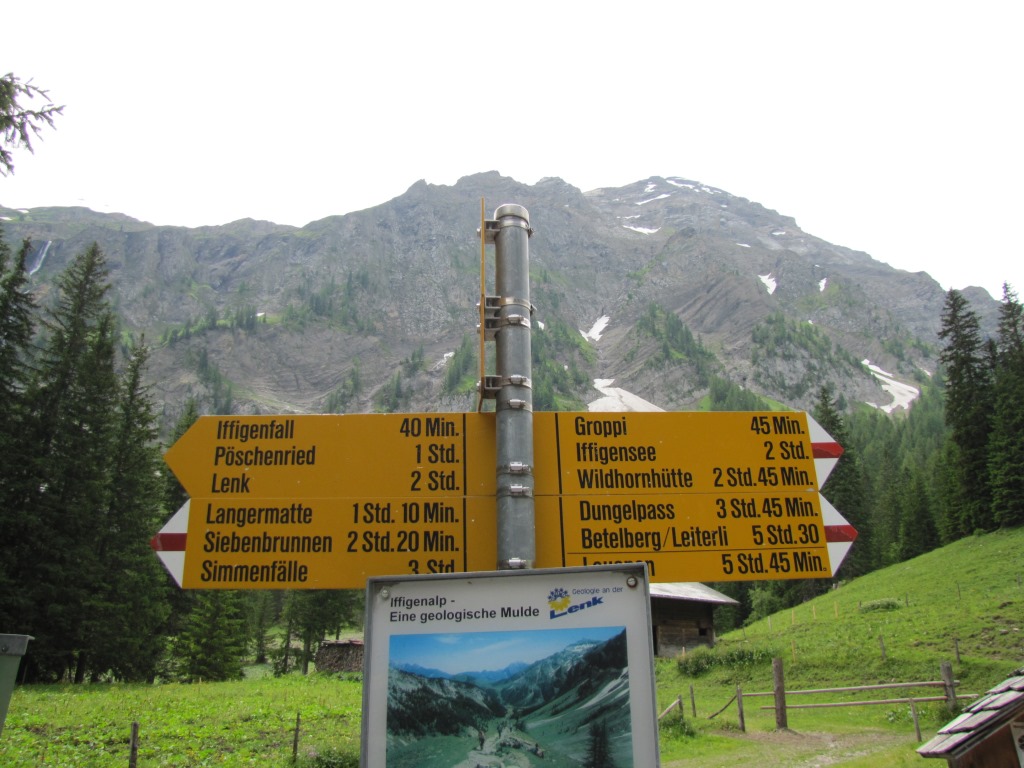 Wegweiser auf der Iffigenalp 1584 m.ü.M.