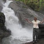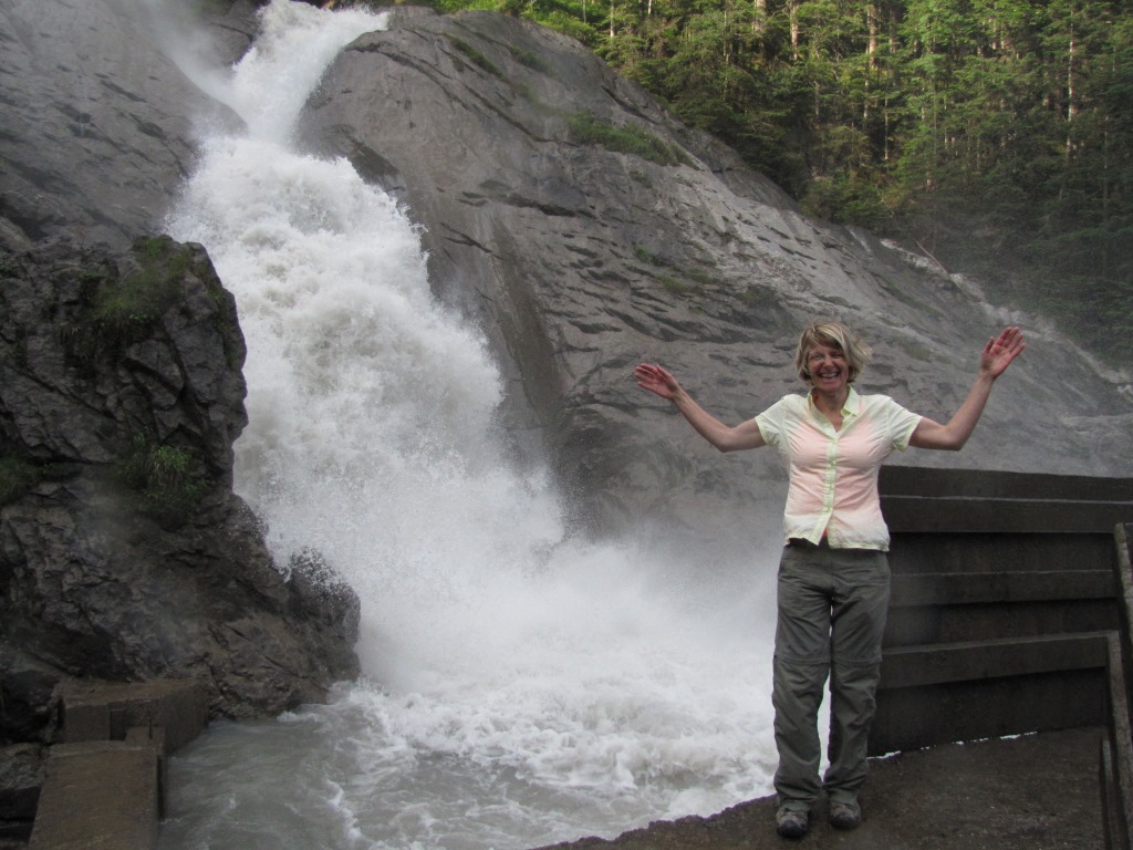 Mäusi bestaunt noch einmal den schönen Wasserfall