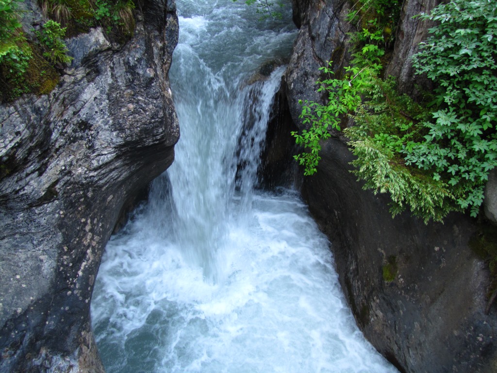 mit brachialer Kraft fällt der Bach in das Tal hinunter