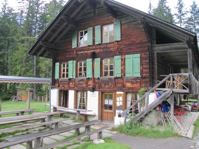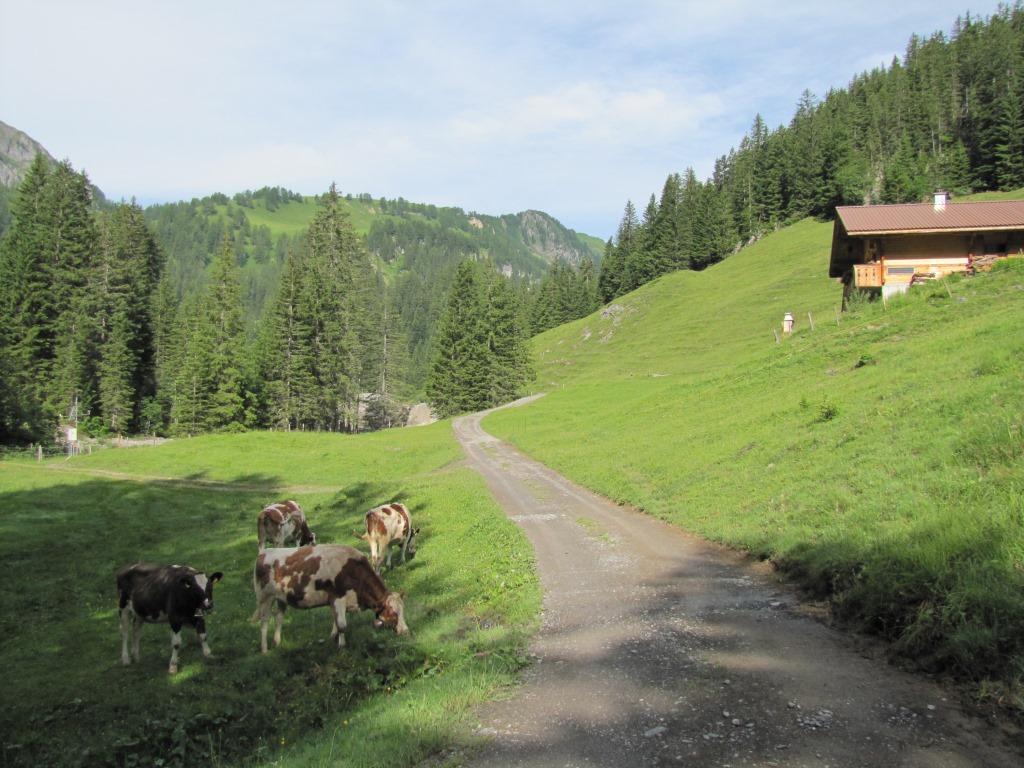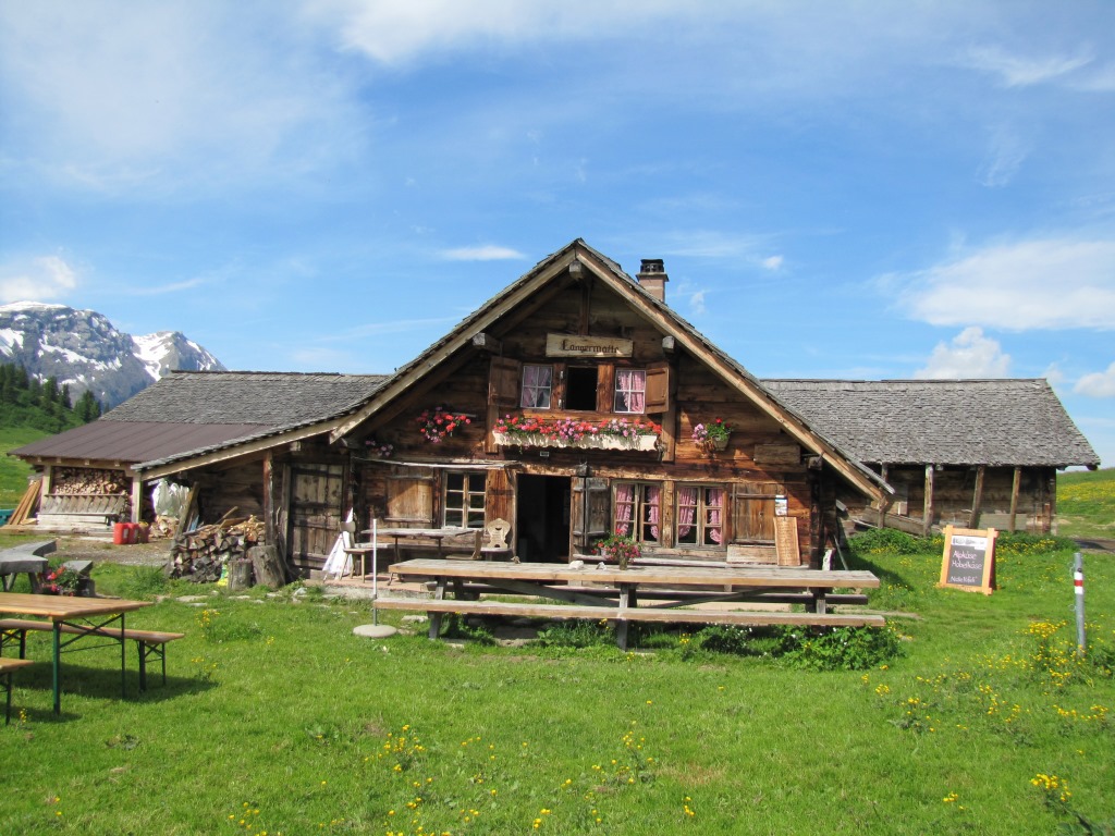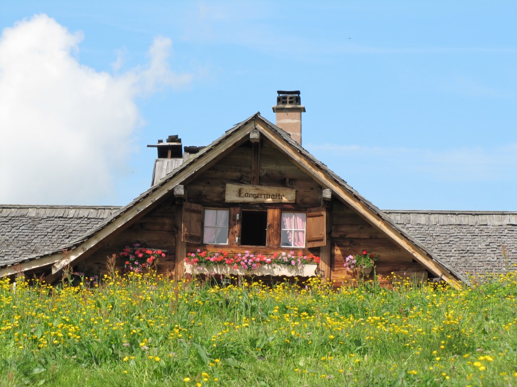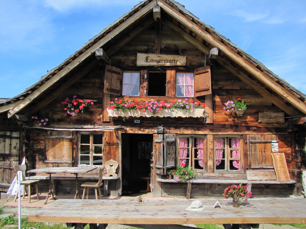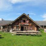 vor uns taucht die Alpwirtschaft Langermatte auf
