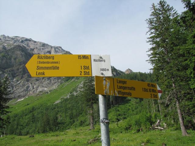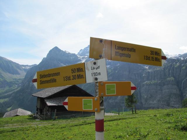 Wegkreuzung auf Iffigläger 1548 m.ü.M nun geht es zur Iffigenalp