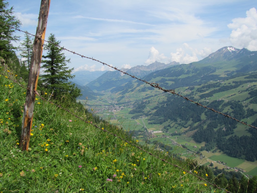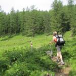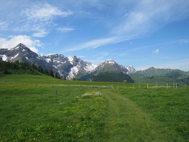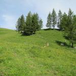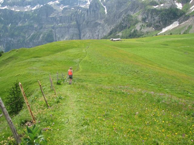 über schöne Alpweiden führt uns der Wanderweg nun nicht mehr so steil Richtung Langermatte