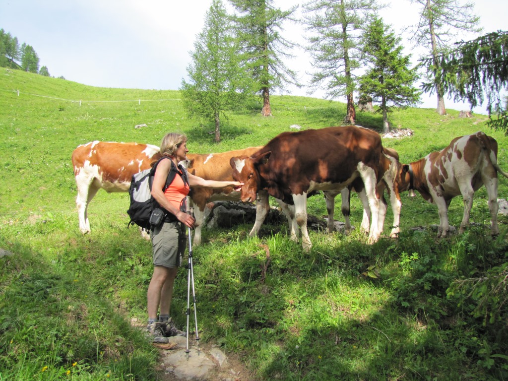 kurz vor Langer versperren uns neugierige Simmentaler Kälber den Weg