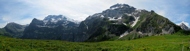 schönes Breitbildfoto von der Langermatte aus gesehen. Ammertespitz, Ammertehore, Wildstrubel und Laufbodehore
