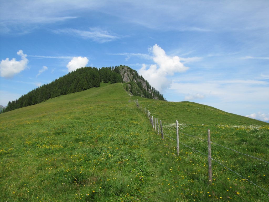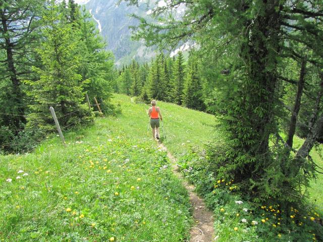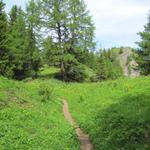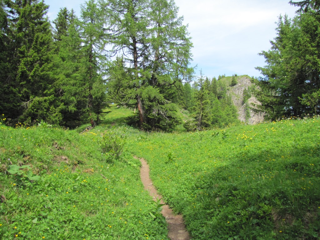 auf dem Weg hinunter zur Langermatte und zur Wegkreuzung bei Punkt 1857 m.ü.M.