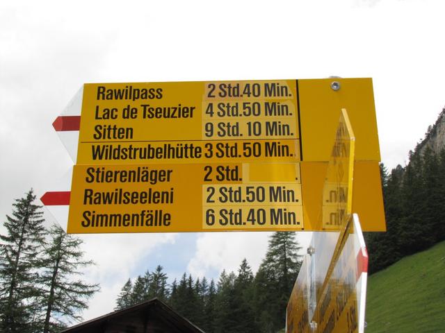 Wegweiser bei Stalde 1370 m.ü.M. es geht weiter Richtung Sibe Brünne