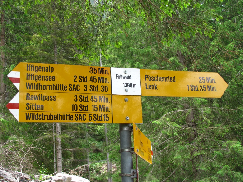 Wegweiser bei Fallweid 1399 m.ü.M. kurz vor dem Iffigfall