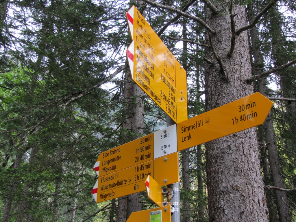 Wegweiser auf der Iffigenalp 1584 m.ü.M.