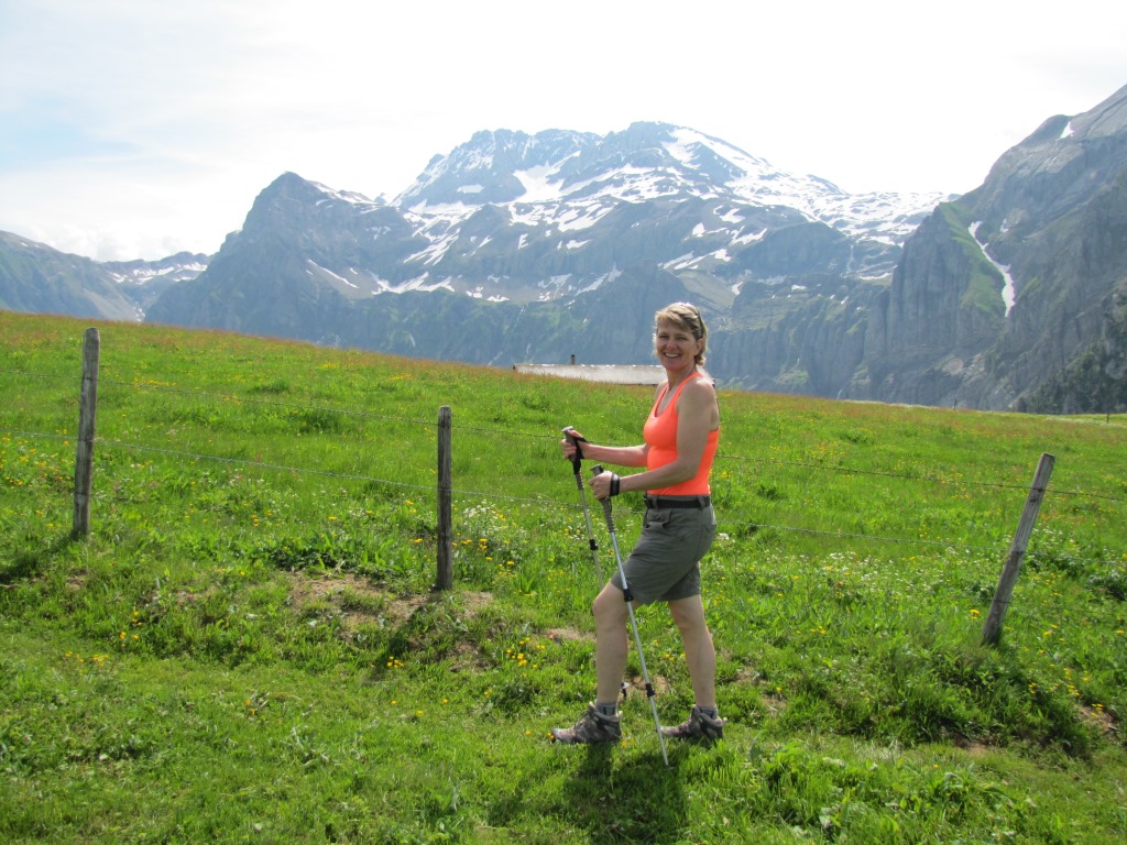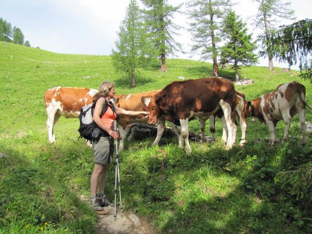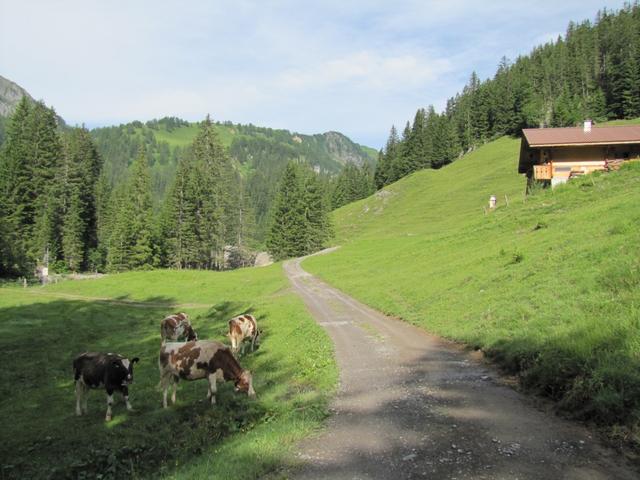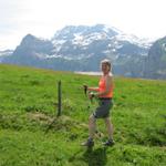 über schöne Alpweiden führt uns der Wanderweg nun nicht mehr so steil Richtung Langermatte