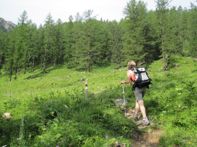 wir haben die Wegkreuzung 1857 m.ü.M. und unsere Rucksäcke auf der Langermatte erreicht