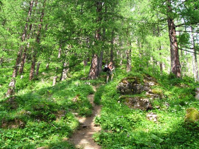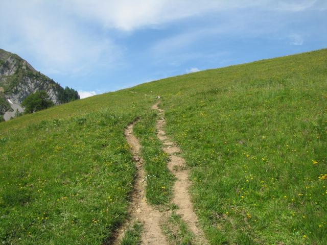 auf dem Weg hinunter zur Langermatte und zur Wegkreuzung bei Punkt 1857 m.ü.M.