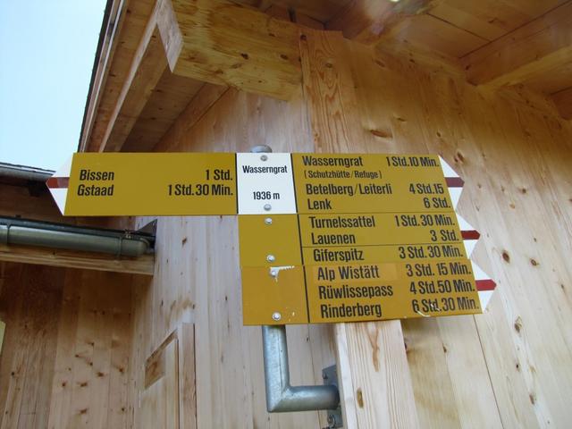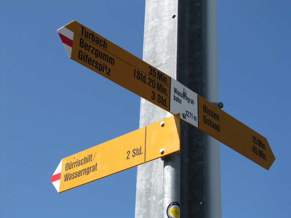 Wegweiser bei Gstaad-Bissen 1170 m.ü.M. uns heutiges Ziel der Wasserngrat
