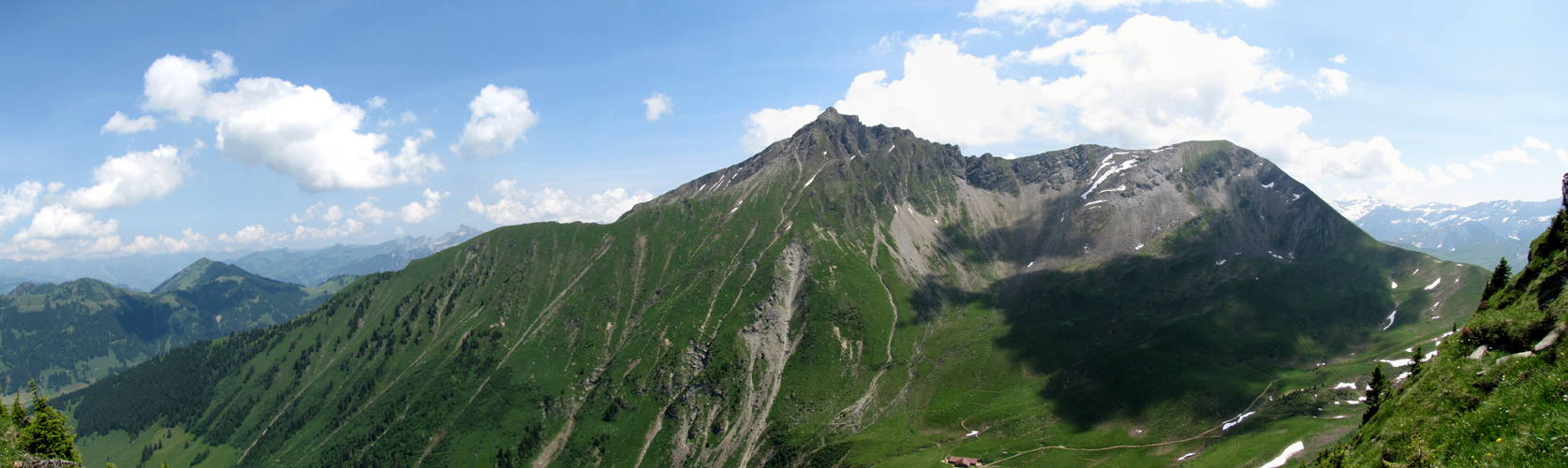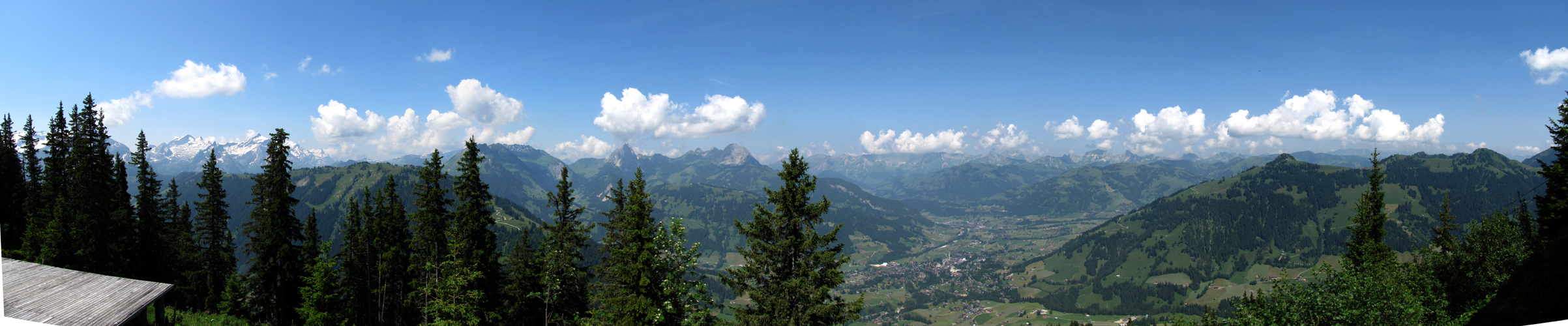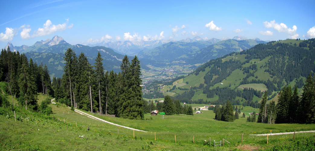 traumhaftes Breitbildfoto. Das ganze Saanenland liegt einem zu Füsse