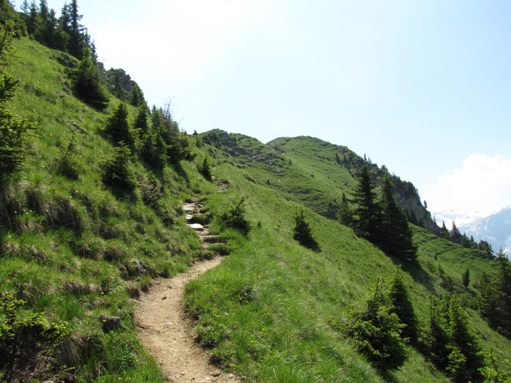der Bergpfad gut ersichtlich am Wasserngrat mit Burgfelse und Stand