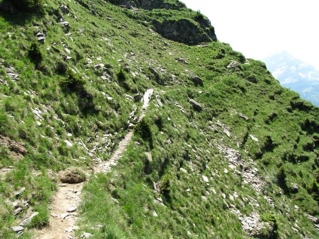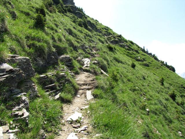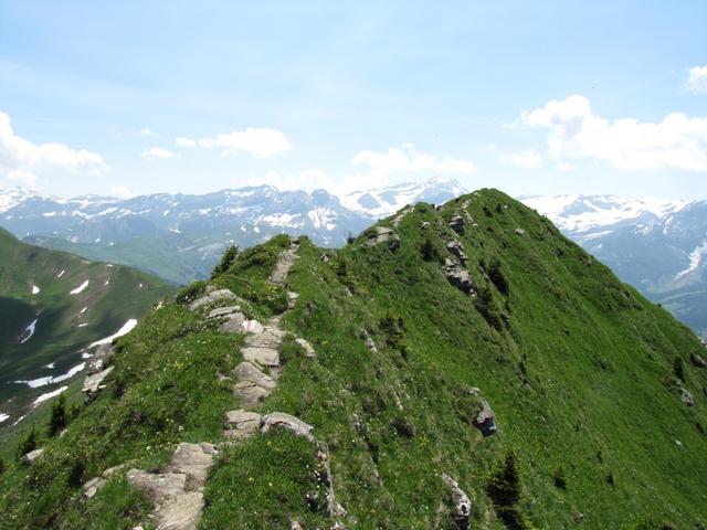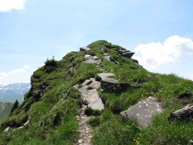 der Bergpfad verläuft nun alles direkt dem Grat entlang. Schwindelfreiheit wäre von Vorteil