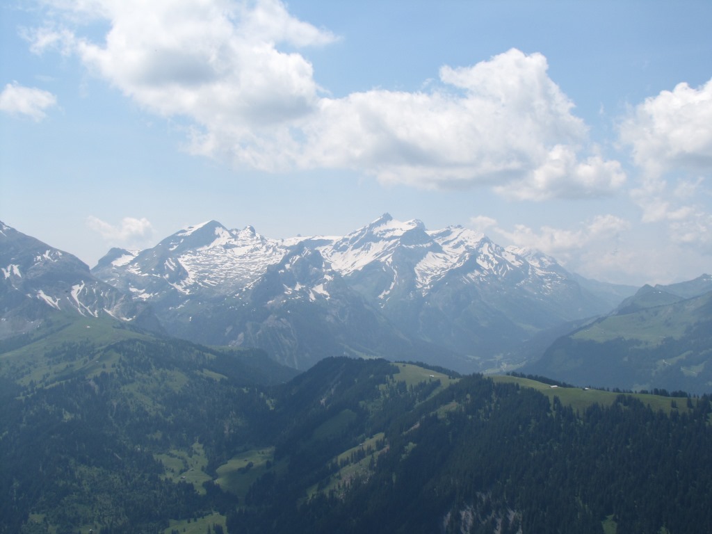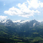 Breitbildfoto mit Wildhorn, Arpelistock und Les Diablerets. Dort oben waren wir auch schon