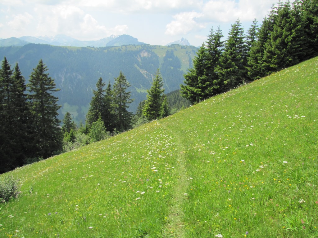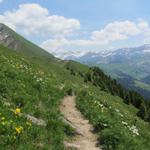 über Alpweiden geht es alles aufwärts bis nach Dürrischilt 1936 m.ü.M.