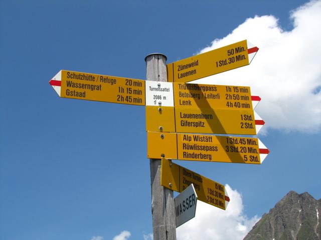 Wegweiser bei Lauenen 1241 m.ü.M.