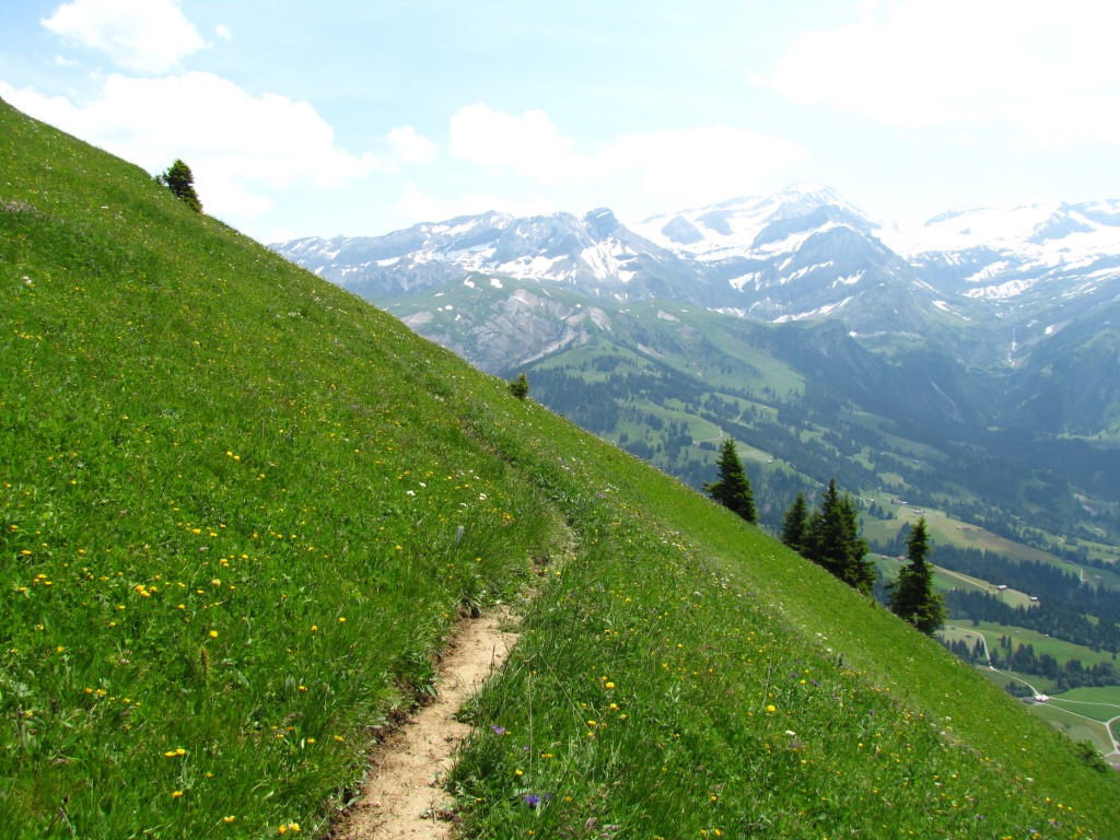 von Gstaad hinauf zum Wasserngrat sind es fast 1000 Höhenmeter. Achtung! die Seilbahn fährt nur im August und im Winter