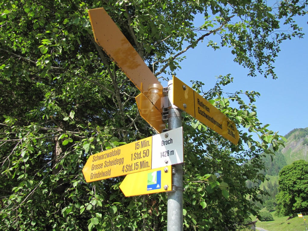 Wegweiser beim Eingang der Gletscherschlucht 1360 m.ü.M.