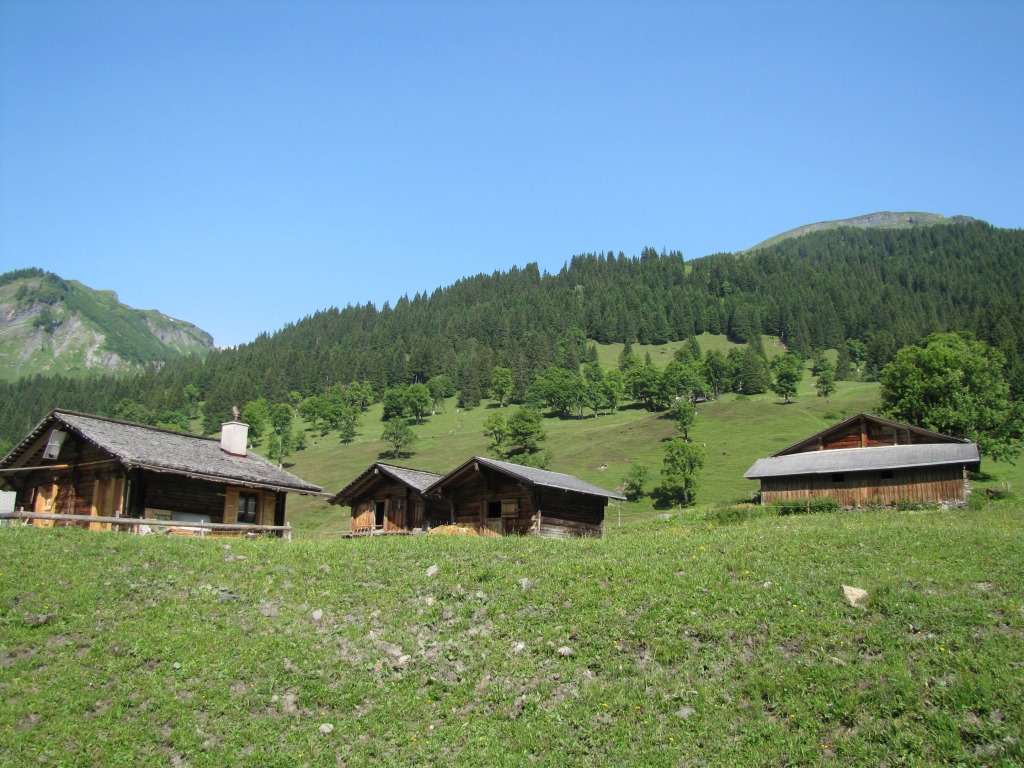 Blick Richtung Wellhorn, Dossen und Dossenhütte. Dort oben waren wir auch schon