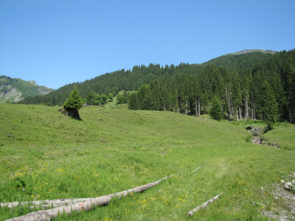 Weglos über Alpweiden führt der Weg nun aufwärts zur Brochhüte