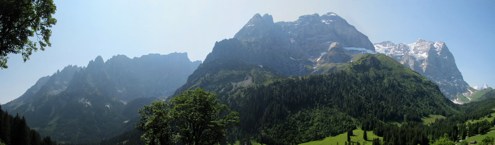 schönes Breitbildfoto mit Engelhörner, Wellhorn und Wetterhorn