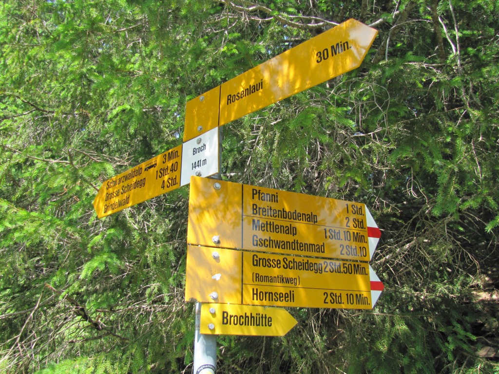 über die Alpstrasse verlassen wir die Brochhüte und laufen Richtung Punkt 1443 m.ü.M.