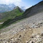 die etwas abweisende Schuttflanke muss durchquert werden Datum 26.11.2014