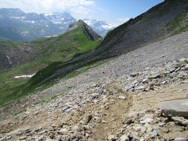 der Bergpfad führt durch die mit Schiefersteinen und -platten übersäte Ostflanke des Giferspitz Datum 03.12.2014