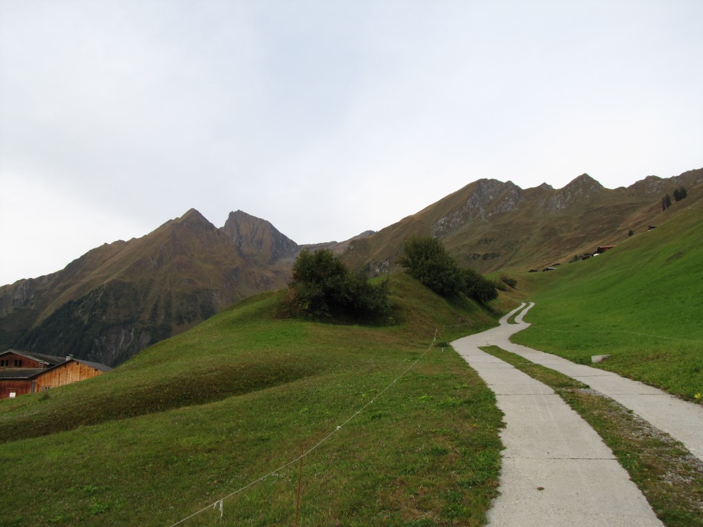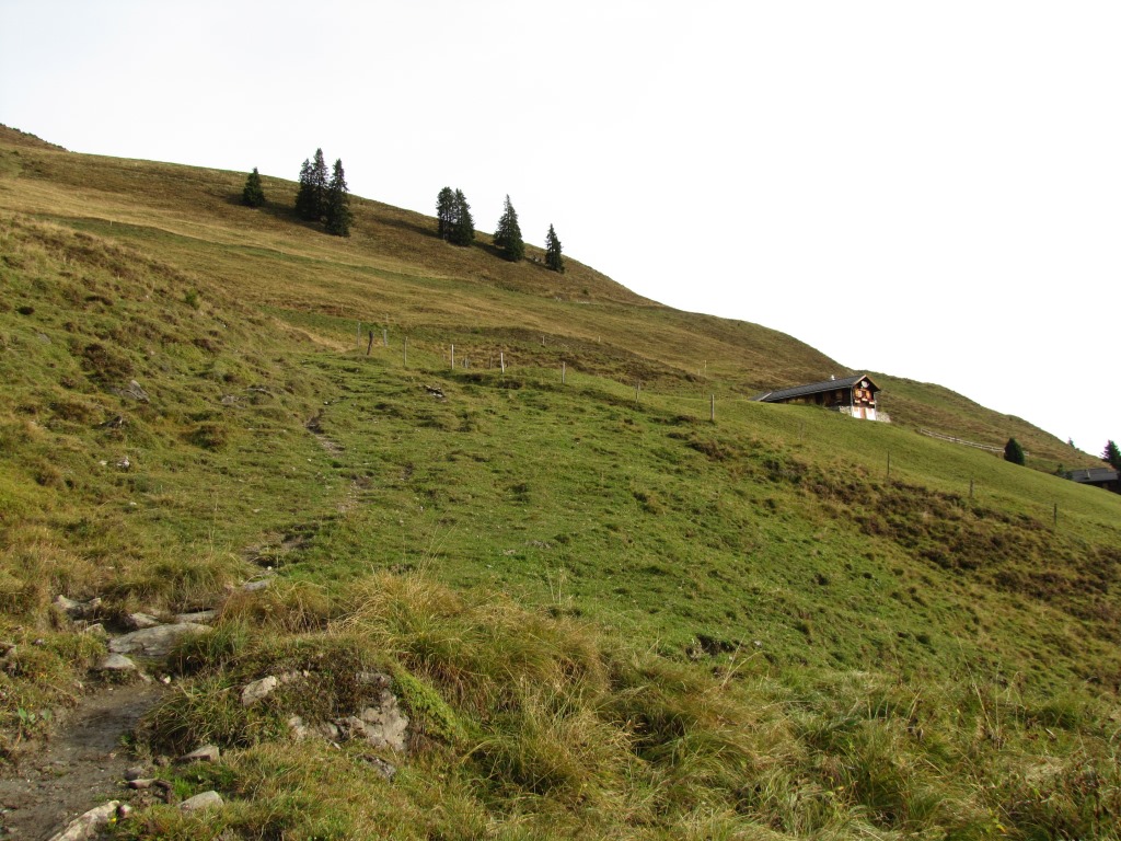 über Alpweiden führt der Wanderweg aufwärts Richtung "Bir obera Hütta"
