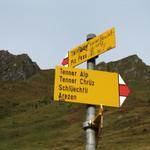 Wegweiser bei "Bir obera Hütta" 1865 m.ü.M.