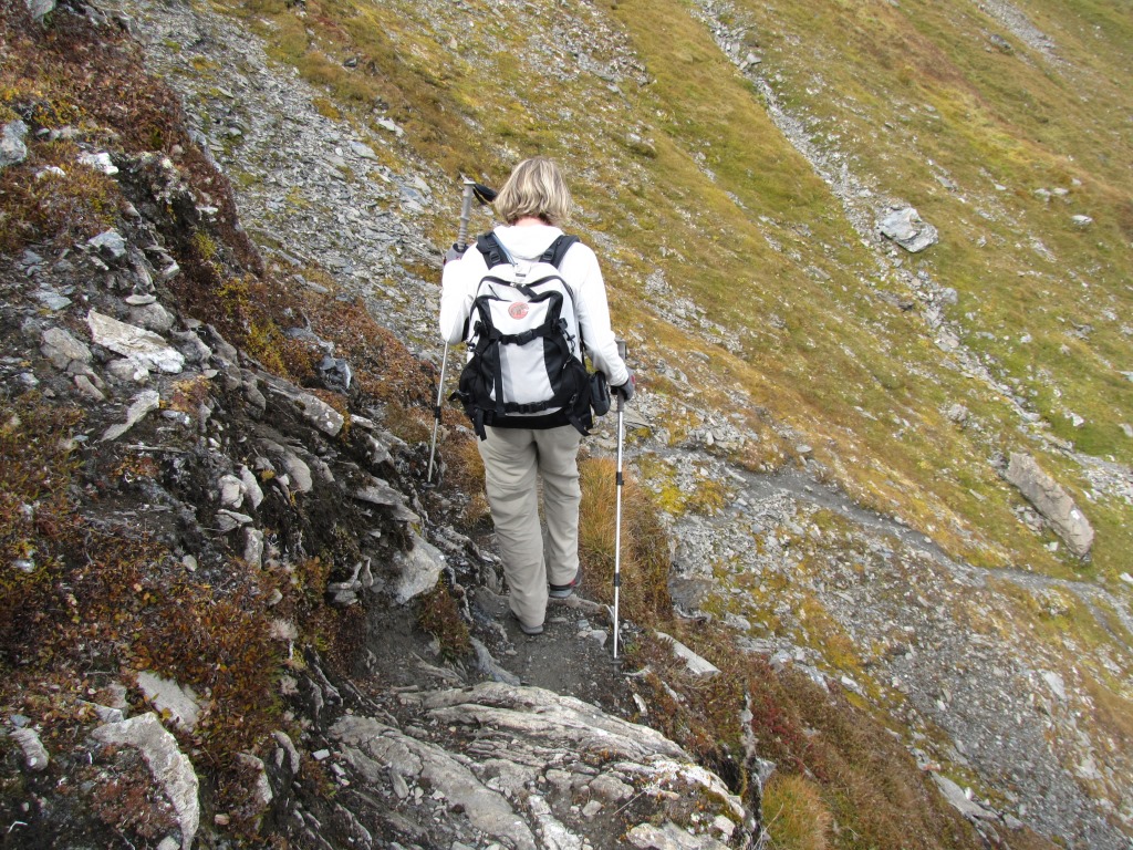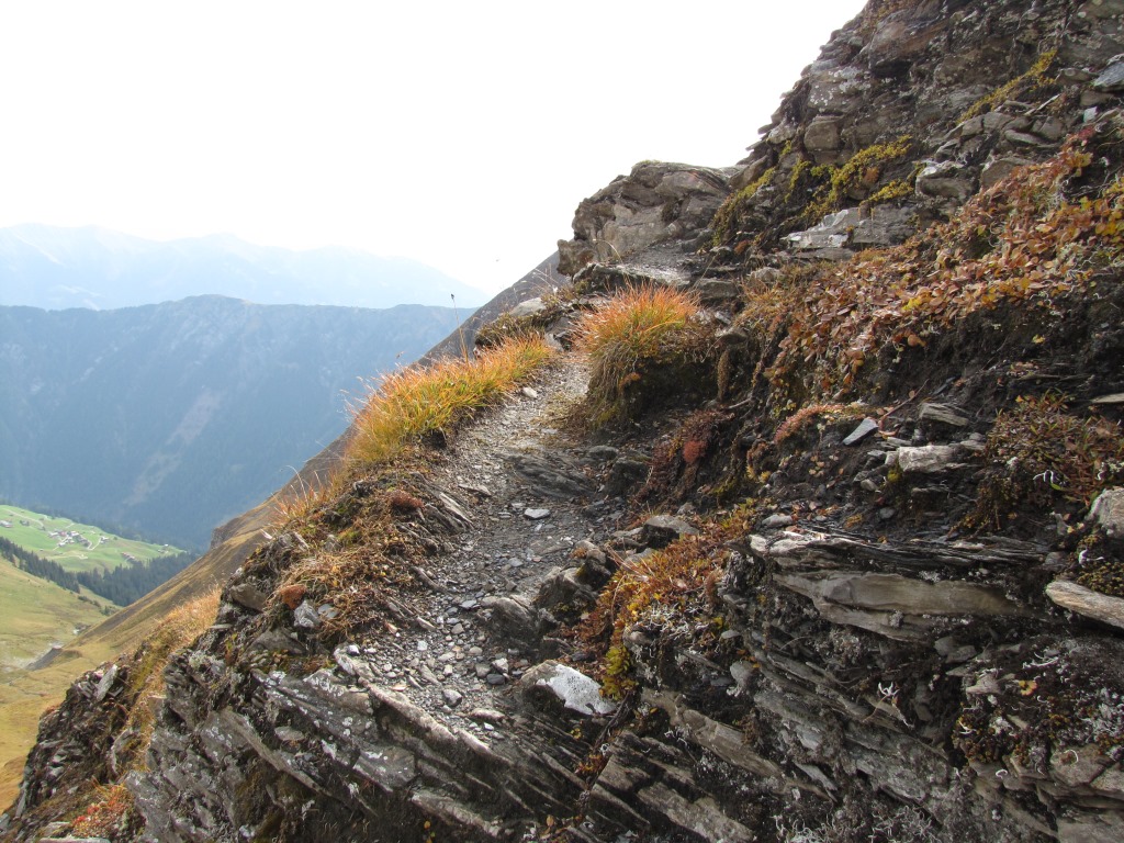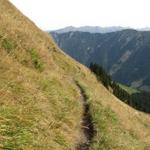 bei Punkt 1956 m.ü.M. ist der Wanderweg schmal und ausgesetzt
