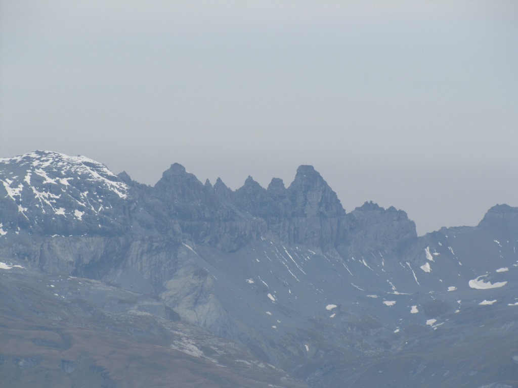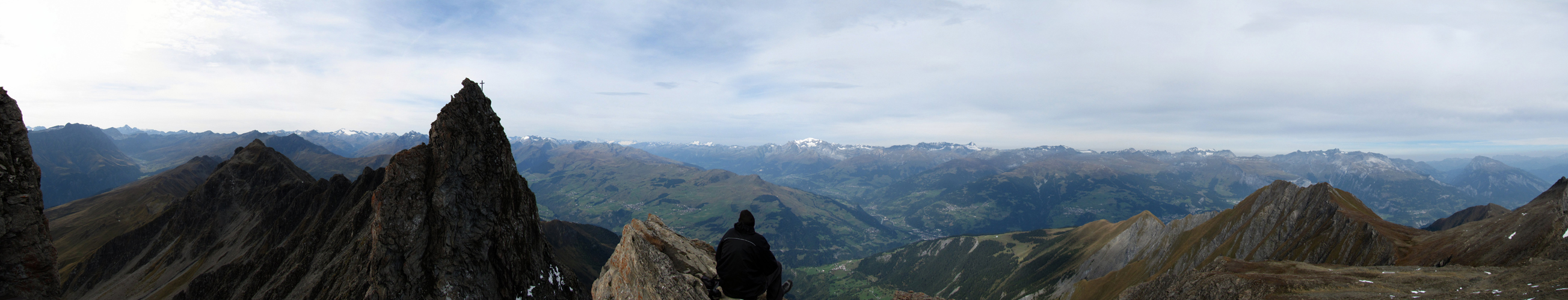 schönes Breitbildfoto mit Blick in die Surselva und Düssi, Tödi und viele andere mehr