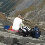obwohl das Wetter nicht so mitspielt, geniessen wir die Mittagspause auf dem Piz Fess