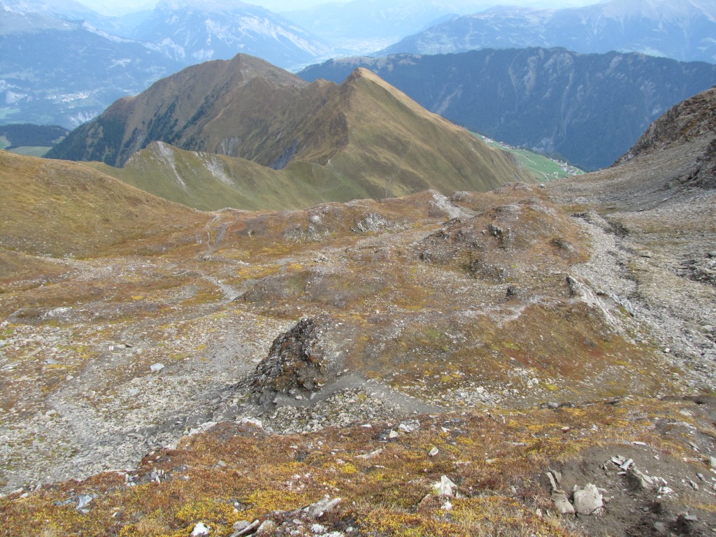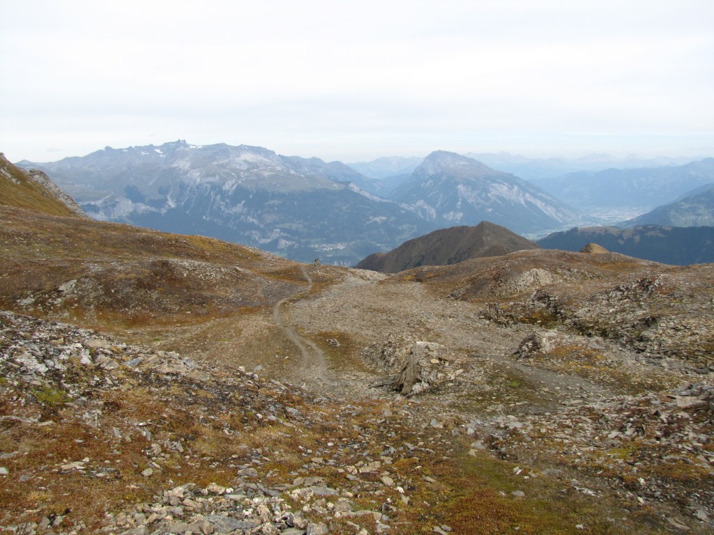 vor uns die Nolla und weiter hinten der Haldensteiner Calanda. Dort oben waren wir auch schon
